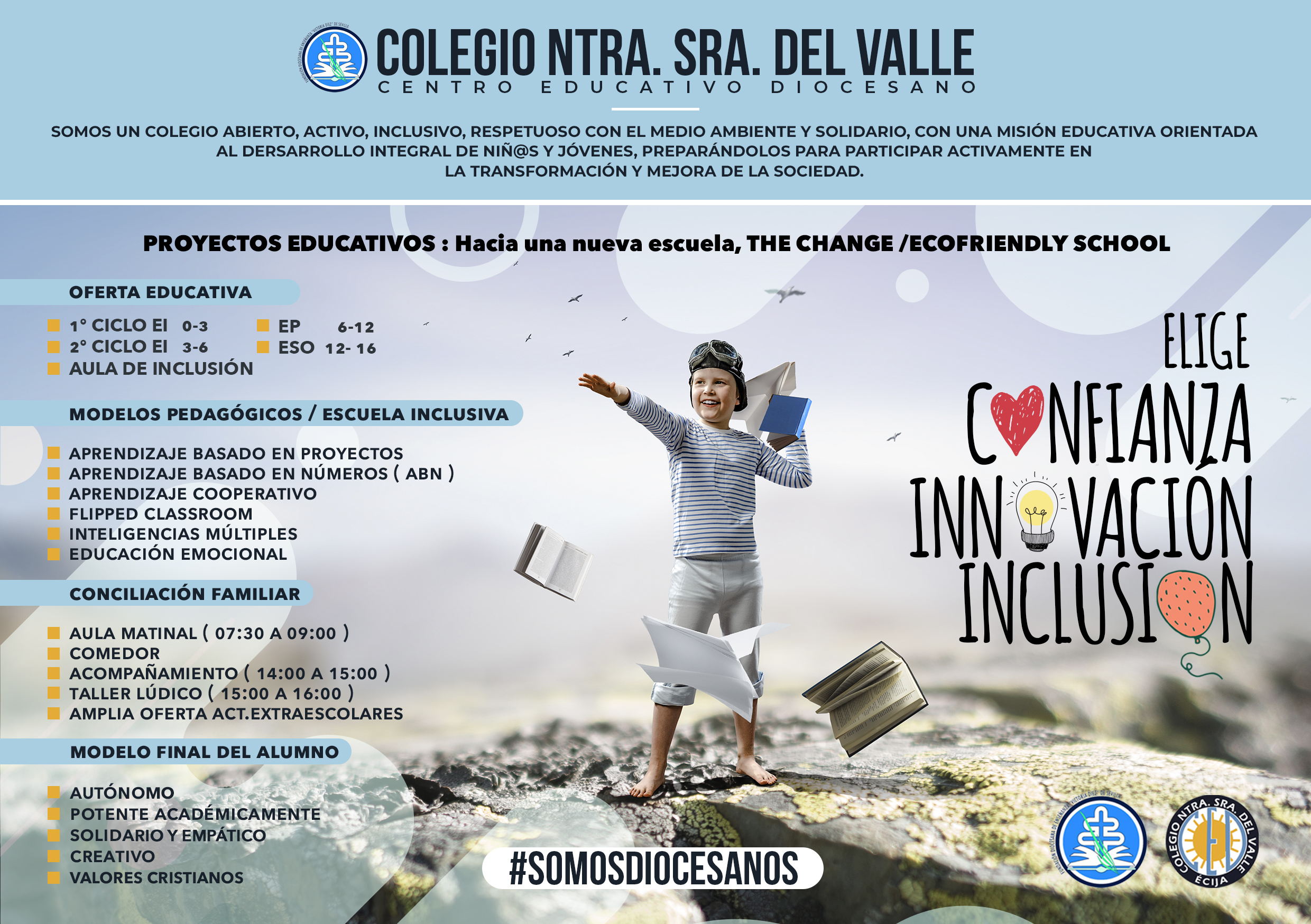 Nuestro centro cubre las etapas de Educación Infantil (0-6 años), Primaria y Secundaria.