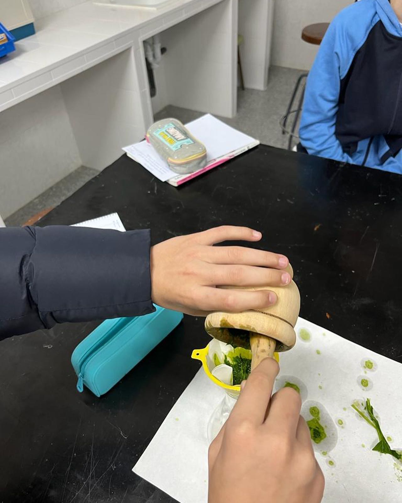 Filtración; alcohol96* + hojas de espinacas