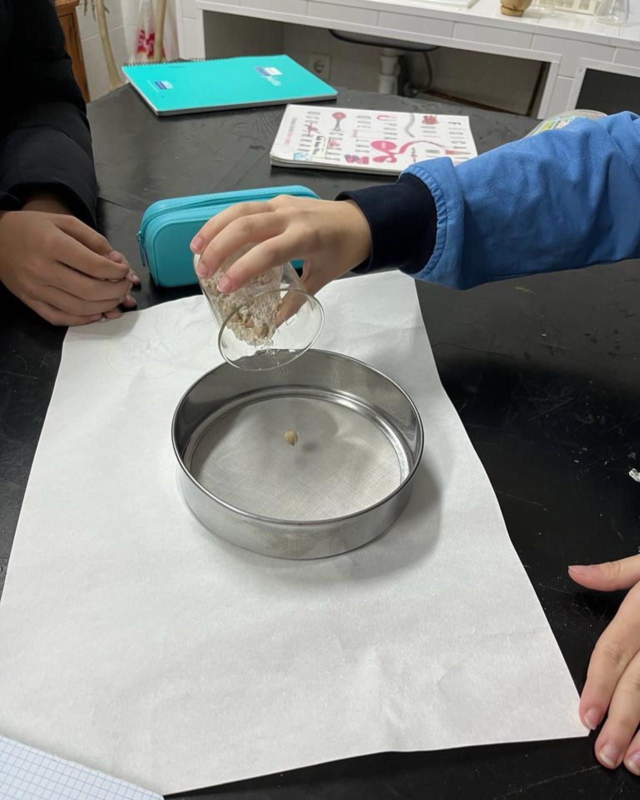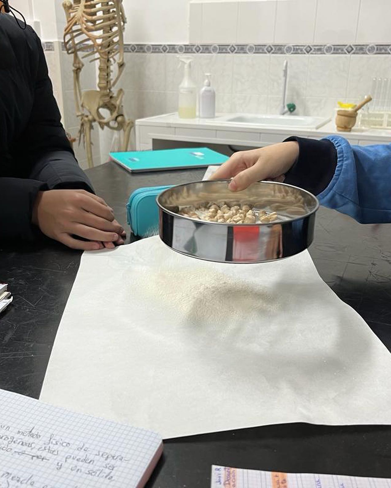 Tamización; usando tamiz y la mezcla de garbanzos+harina.