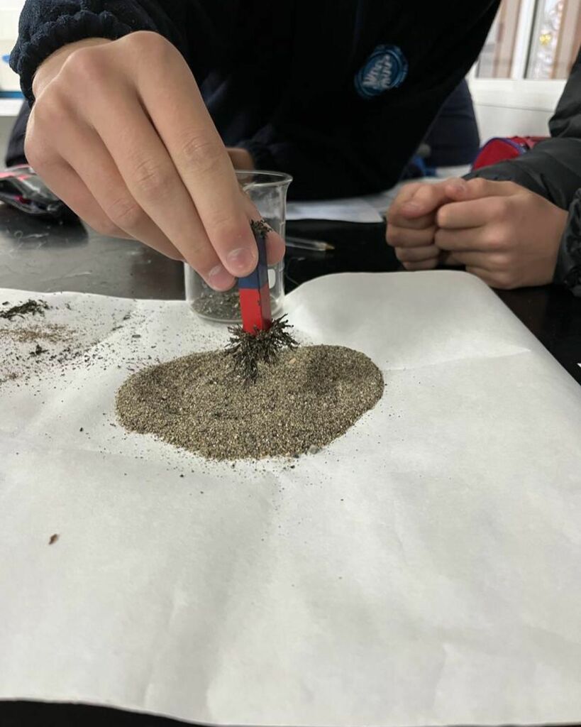 Separación Magnética; mezcla de virutas de hierro+arena de la playa