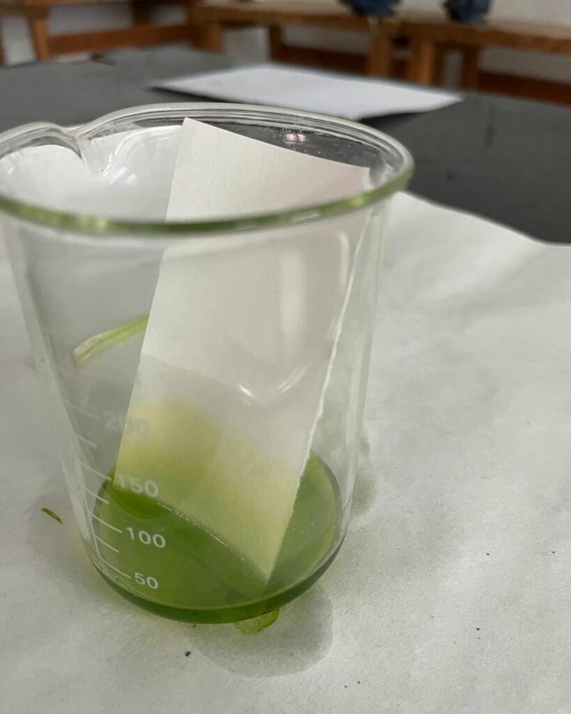 Cromatografía; clorofila de las hojas de espinacas