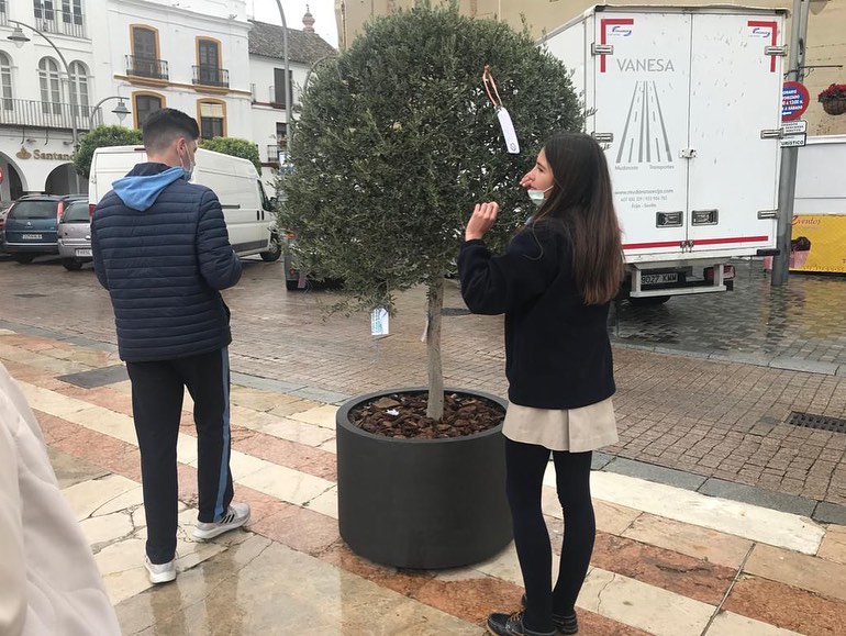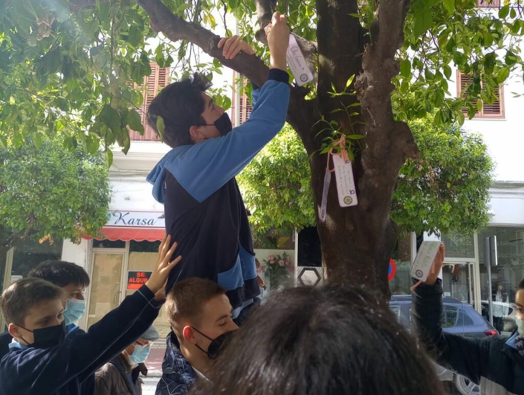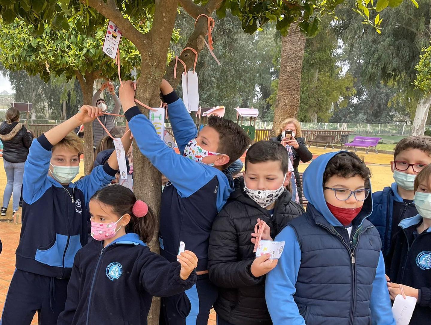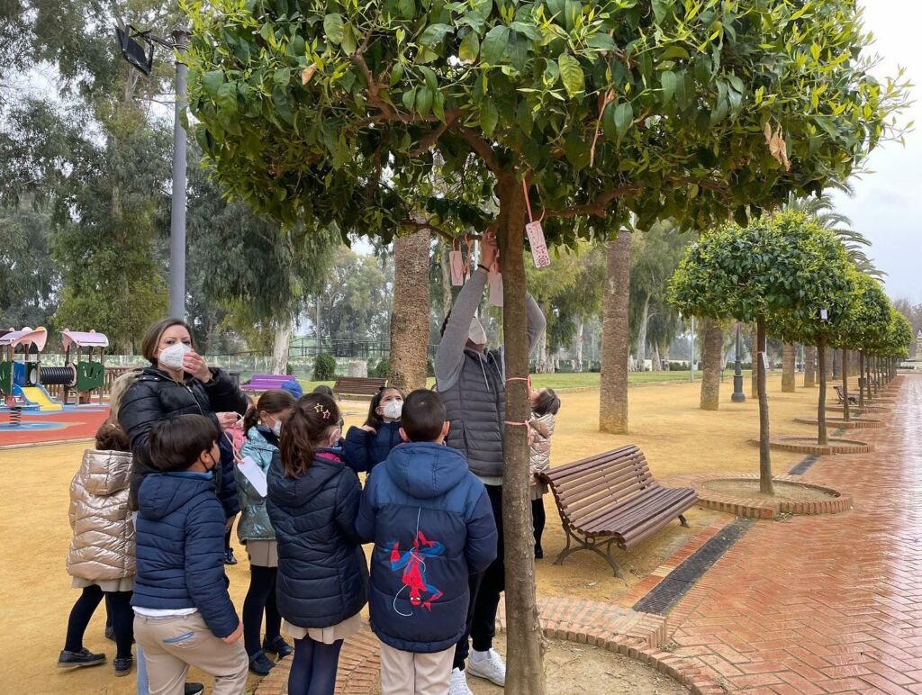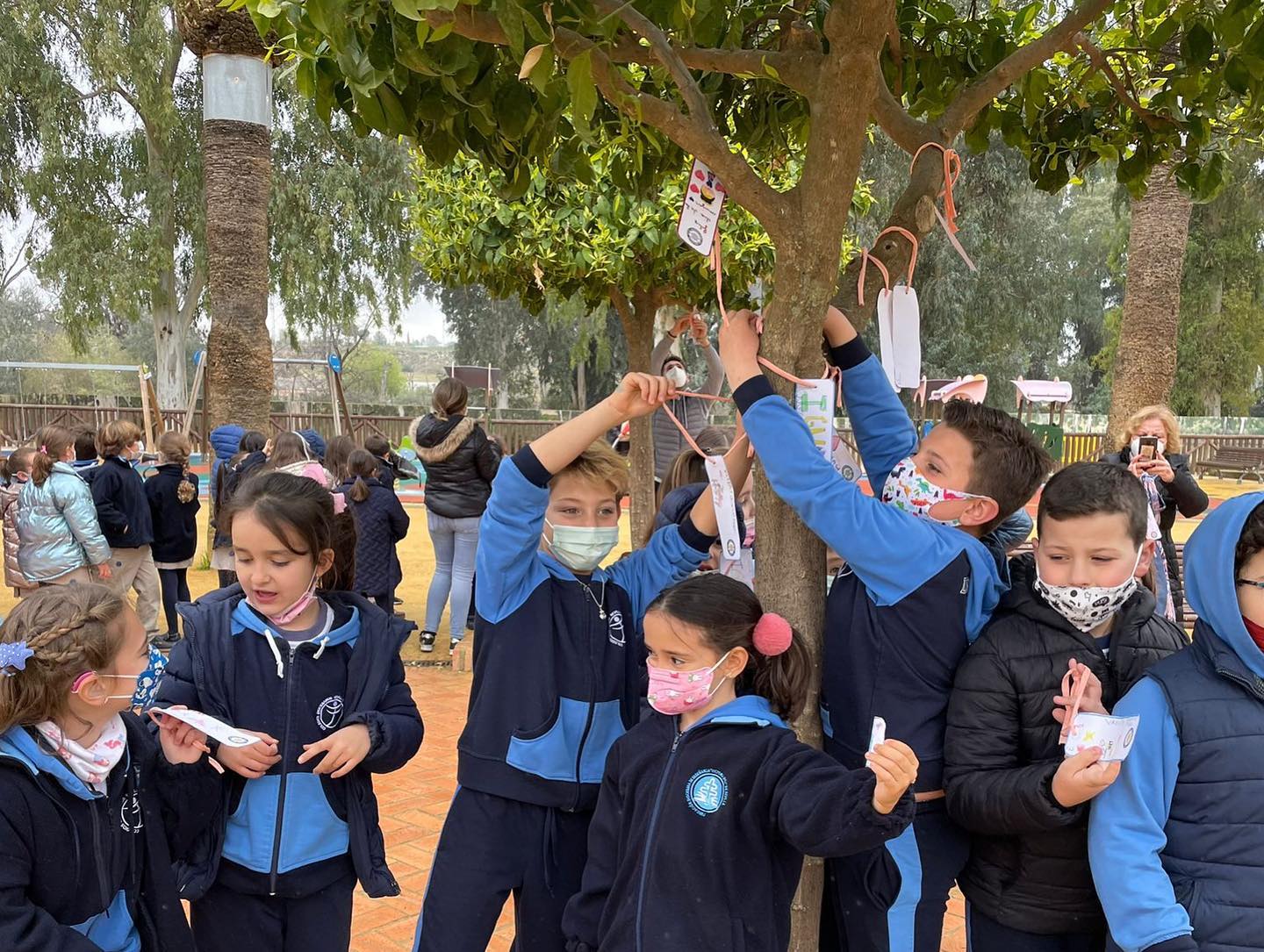 Para ello, los alumnos han diseñado unas tarjetas donde han plasmado a través de dibujos y frases los valores que queremos ensalzar en esta jornada. Posteriormente, por ciclos hemos colgado dichas tarjetas en las ramas de los naranjos de nuestra ciudad.