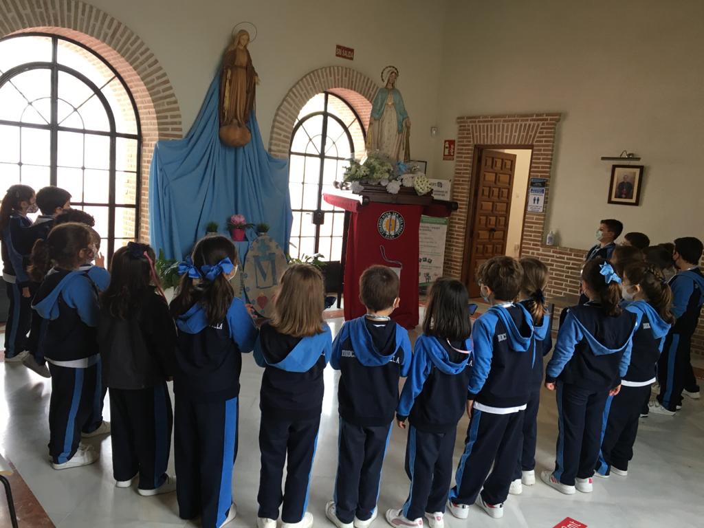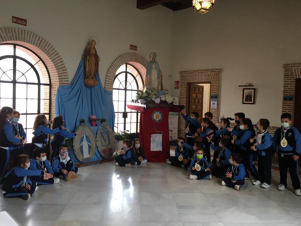 El pasado 27 de Noviembre, nuestro Colegio celebró con alegría y cariño el día de nuestra titular, La Virgen Milagrosa, las semanas previas todos nuestros niños y niñas , realizaron dibujos en honor a la virgen, decoraron un pequeño altar con flores y ensayaron bonitas canciones y poesías salidas del corazón.