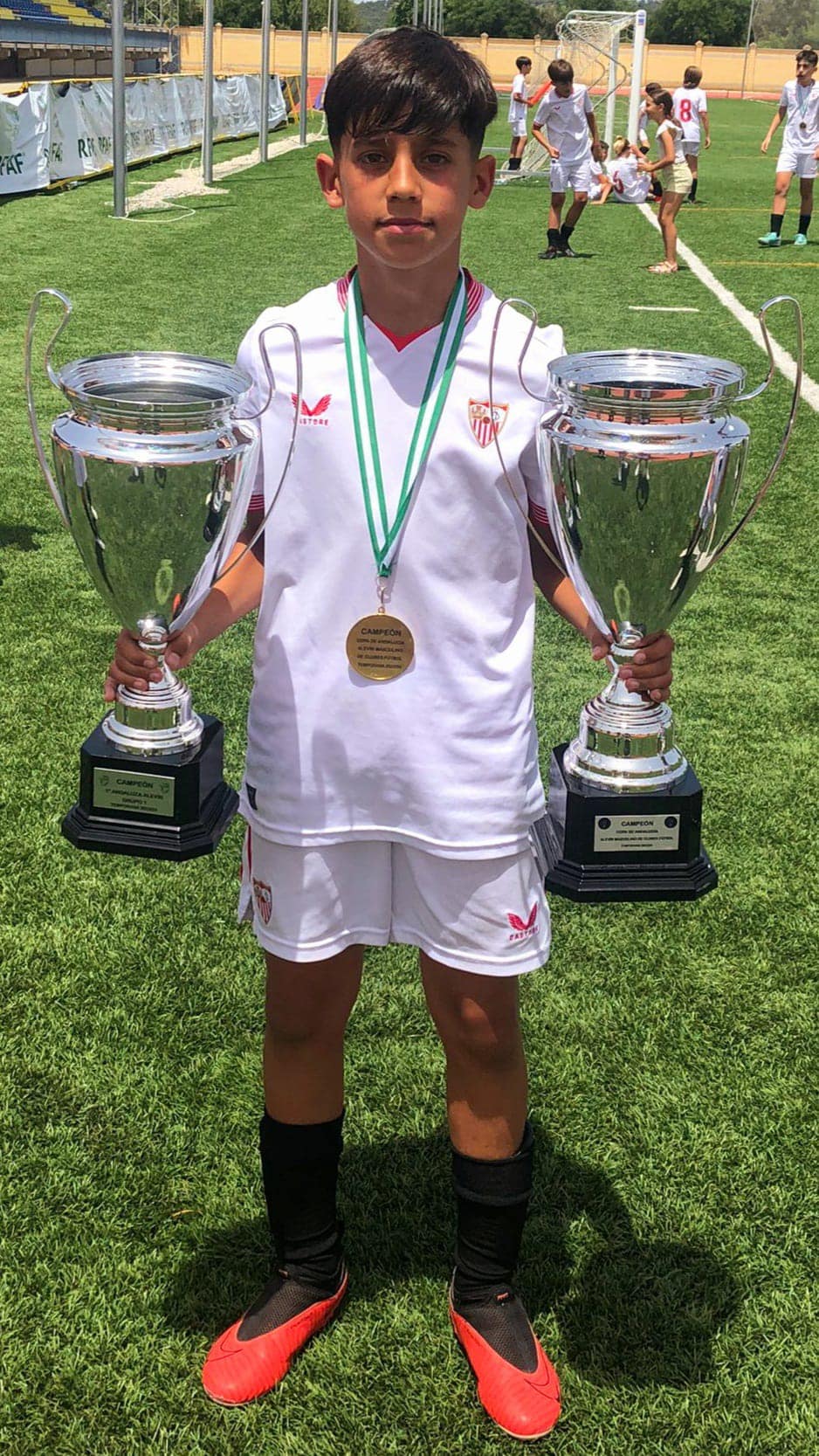 Nuestro alumno Oliver ha sido con su equipo, Sevilla FC, campeón de liga en 1ª Andaluza en categoría Alevín, además han sido campeones de la Copa Andalucía.