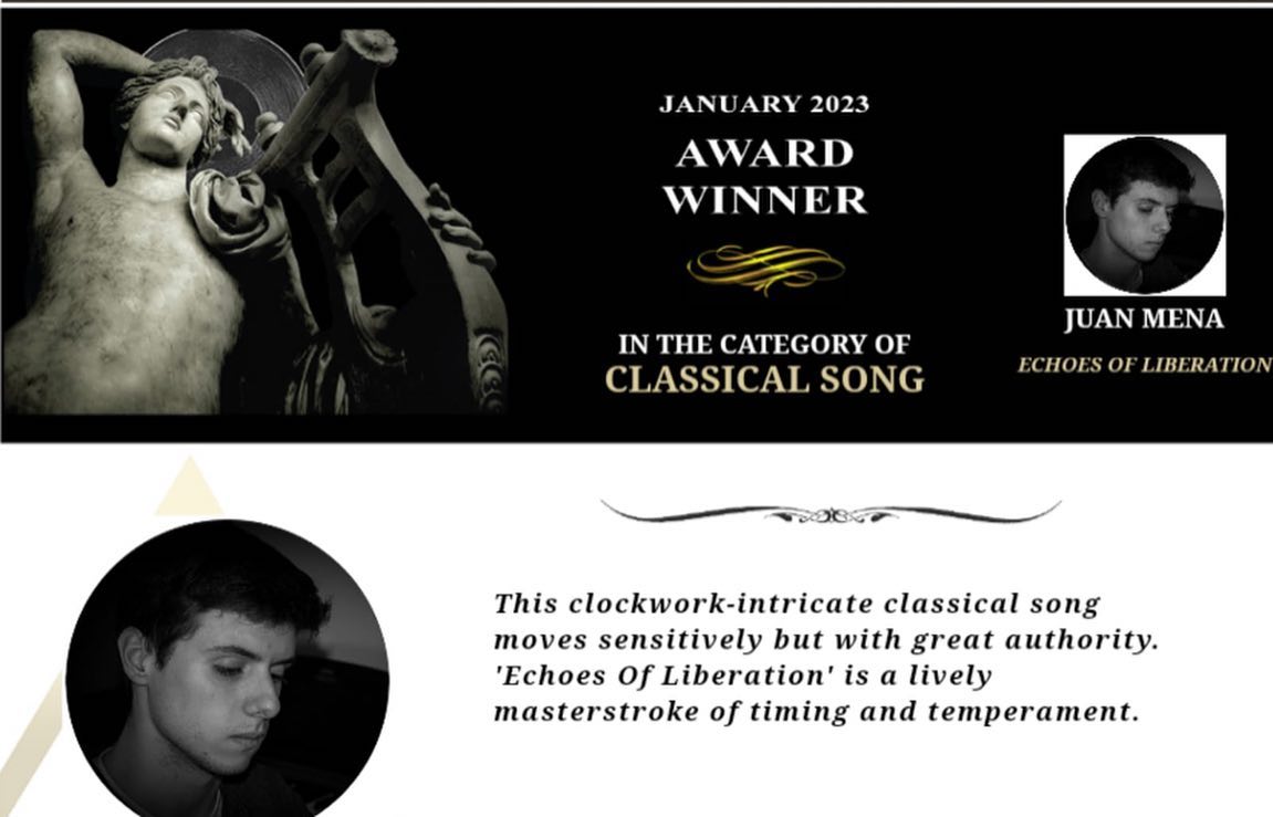 Damos la enhorabuena a nuestro antiguo alumno Juan Mena por haber sido premiado por una composición musical.🎼🔝