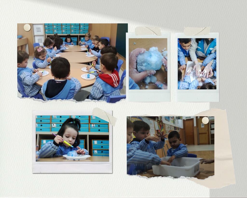 14 marzo, 2022 CEI VIRGEN MILAGROSA Experimentamos las sensaciones y texturas que nos permite la estación invernal, fabricando nieve artificial y mezclándola con hielo pintado de azul. !A nuestros peques les ha resultado divertidísimo!
