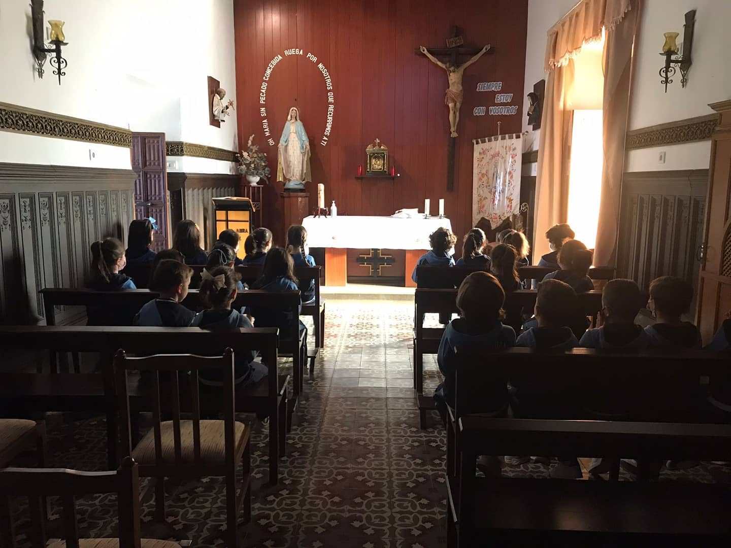14 mayo, 2021 Nuestr@s peques de infantil visitan a nuestra madre María en su capilla, para dedicarle sus oraciones de la mañana Dulce Madre no te alejes Tu vista de mí no apartes Ven conmigo a todas partes Y solo nunca me dejes