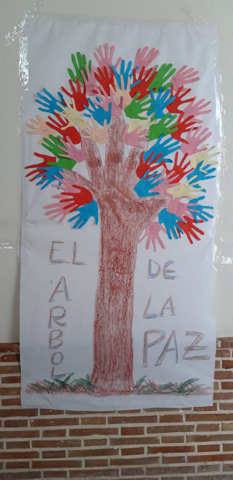 Porque hoy en día vivimos en un mundo loco, nos preocupa mucho un mundo mejor para poder convivir los unos con los otros y nuestros niños de Confirmación quieren contribuir a ello plantando un árbol donde han sembrado frases llenas de paz.