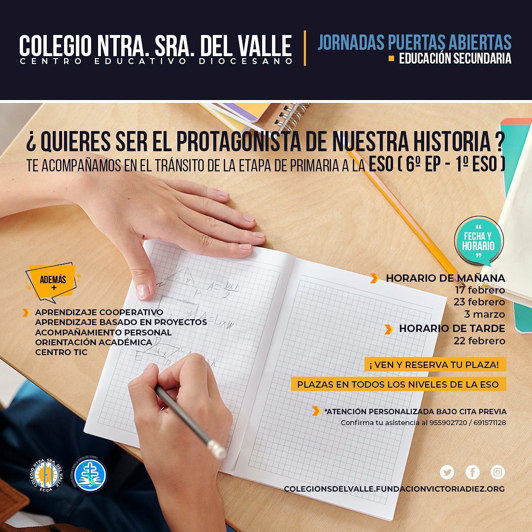 16 febrero, 2021 PUERTAS ABIERTAS PARA ALUMNADO ESO Si tienes hij@ entre 12 y 16 años ven y conoce nuestro proyecto. Tú elección es su futuro 955902720 / 691571128