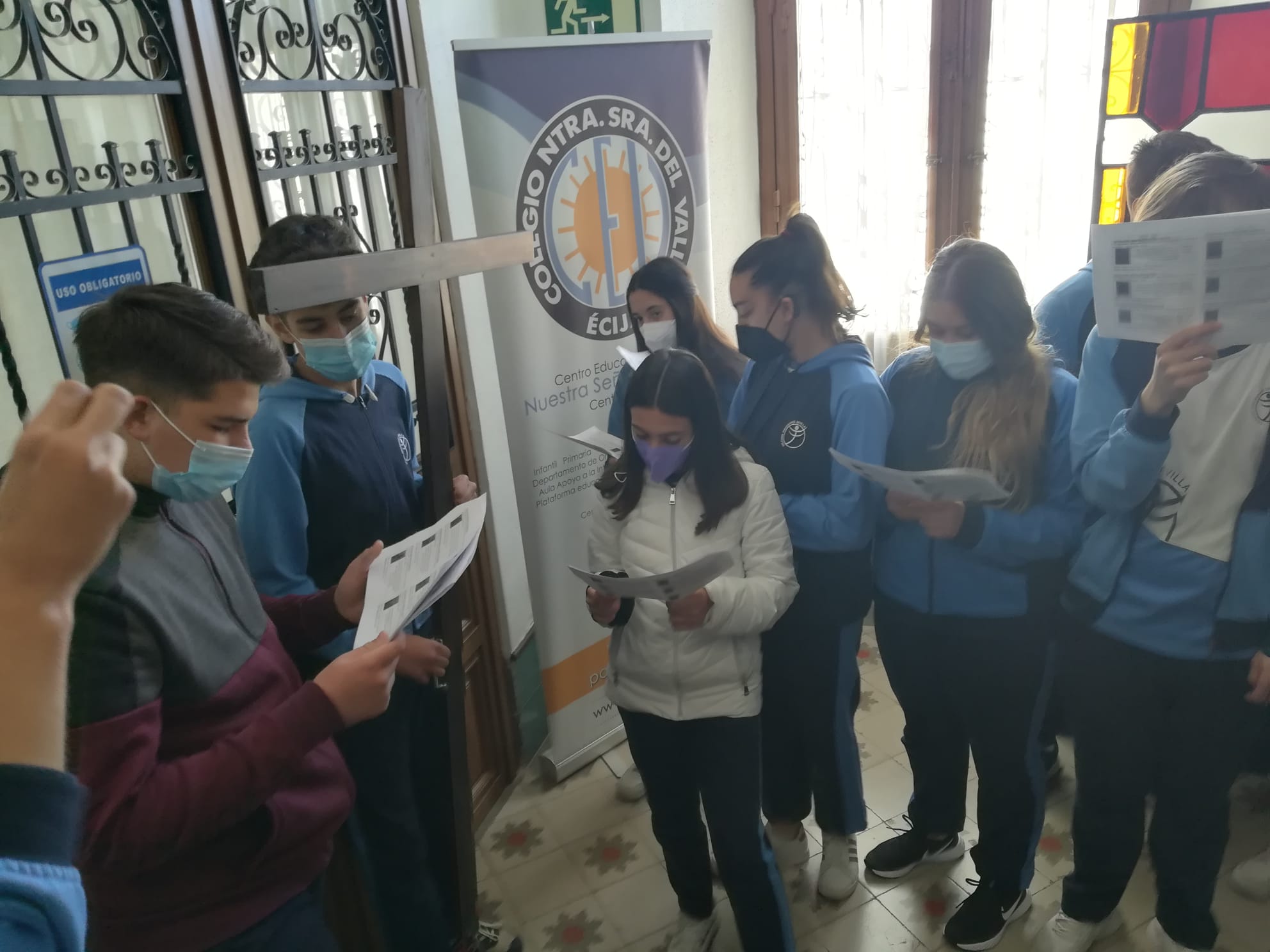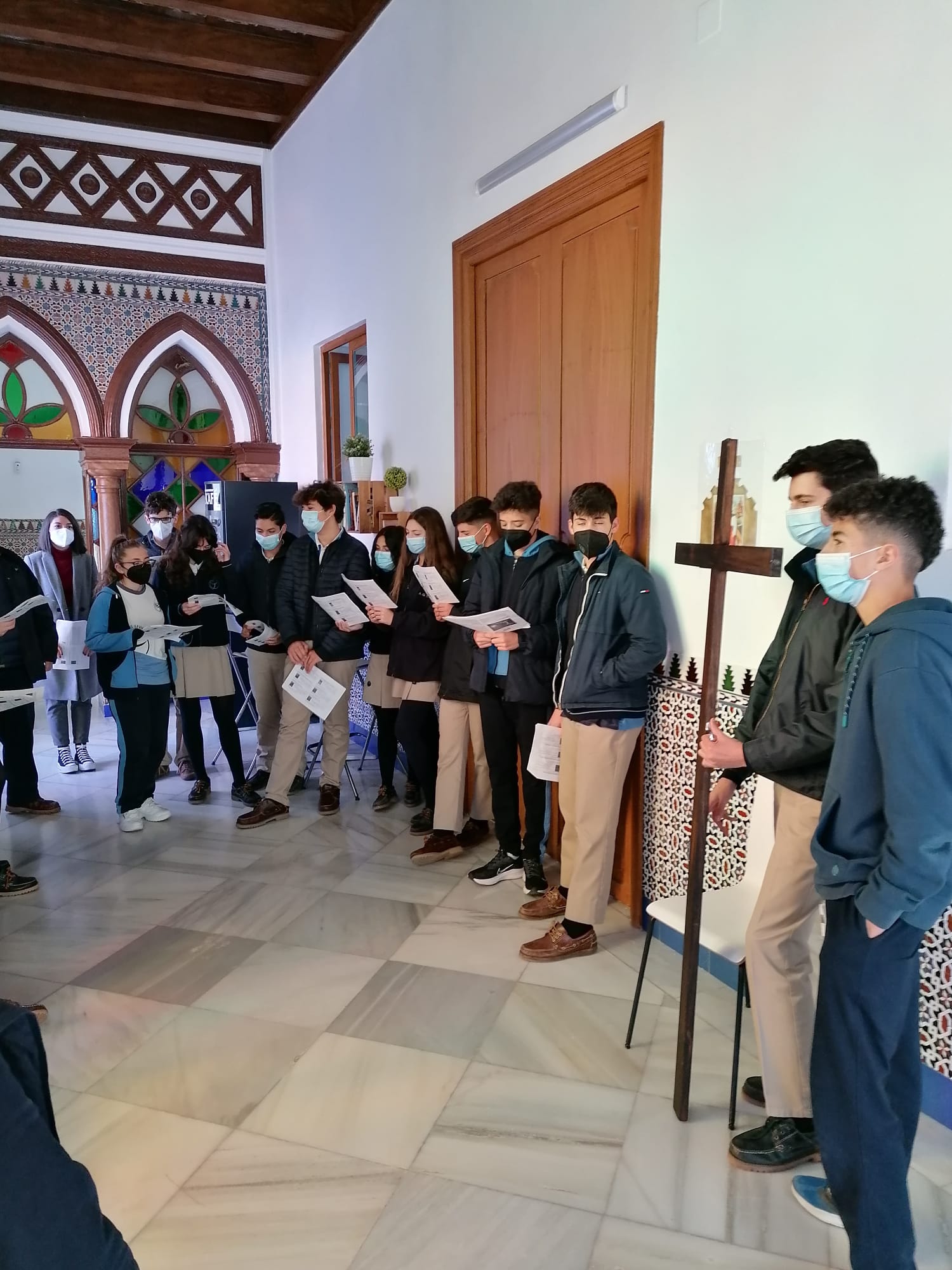 Esta semana le ha tocado a nuestro alumnado de secundaria, realizar el Vía Crucis por las distintas estancias de nuestro colegio. A lo largo de las estaciones recordaron y meditaron sobre los últimos momentos de Cristo.